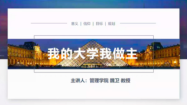 本网讯(记者 李泳 陈风杭 曾美兰)为了配合疫情防控工作,学校各级领导积极响应上级号召,秉承“少聚集”的疫情防控原则,管理学院心晴驿站于10月17日下午,在线上举办以“我的大学我做主——大学力量、精神、目标及规划”为主题的讲座。借此提高新生对大学的认知,明确大学的奋斗目标及方向,指引新生未来前进的道路。本次讲座的主讲老师为华南理工大学广州学院管理学院教授、工商管理系主任—魏卫教授。