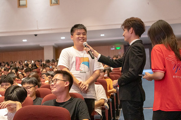 随后,为了进一步地了解同学们丰富多彩的校园生活,主持人以台下采访的互动形式来问答,同学们纷纷踊跃发言“大学以来最想感谢的人是各位班干部,开学以来,为凝聚班级付出了很多心血”。紧跟着新生辅导员刘嘉俊,提出对新生的期许,希望同学们在消费的时候应把握自己的度,并注意防骗,争取做醒目的市民。