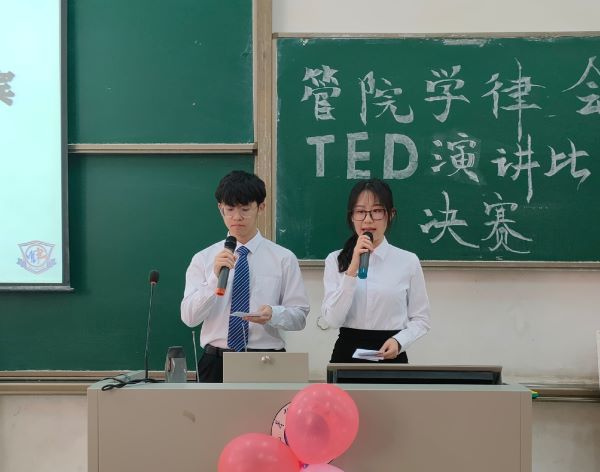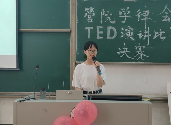 决赛伊始,管理学院学生自律委员会TED决赛主持人对特邀嘉宾20级辅导员应澎老师以及委员们的到场表示了热烈的欢迎和真诚的感谢,同时也详细地叙述了TED比赛的目的与意义——现代社会是人们交往日益密切的社会,是信息广为交流和传播的文明社会,而演讲可以培养良好人际关系和高尚的情操。