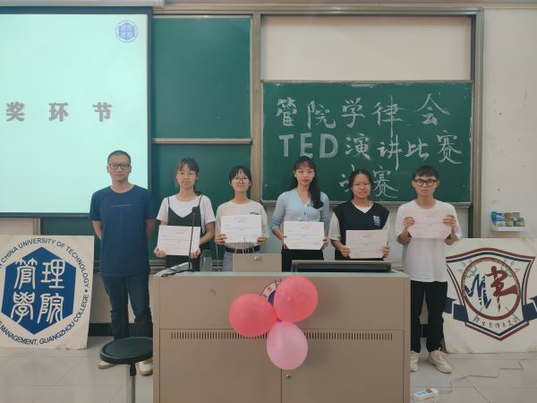 随后,主持人公布比赛获奖名单。选手叶诗颖获得一等奖,选手肖琳芸获得二等奖,选手钟兆钲、梁诗琳获得三等奖,选手周友希获得优秀奖。管院辩论队队长钟妍对选手们的演讲效果做出总结与评价。她指出演讲核心内容以及演讲心态的重要性,希望通过此次TED演讲比赛,同学们能对中国传统文化现代化、中国孝道文化、传统文化魅力以及传统女德有新的见解与体会,并对此次比赛呈现效果表示满意。
