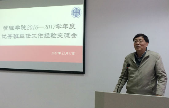 随后,管理学院2016-2017学年共14位优秀班主任分别分享了他们在班主任工作领域的经验。
