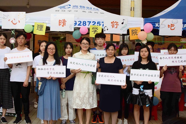 本网讯(记者 钟敏)大学阶段是一个人一生中心理发展变化最活跃的时期,也是一个人心理矛盾及心理压力的多发期。为了响应“525心理健康日”——“525”谐音“我爱我”,给大学生提供一条解忧的通道,引导他们多关注自己的心理健康,5月16日下午,我校管理学院心晴驿站在风雨长廊参与了由心理中心主办的心理游园会活动。我院党总支书记、副院长苏来英、心晴驿站相关老师参加了本次活动。