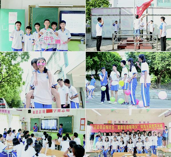 “一米阳光”团队以“厚积明质,躬行明理,开拓明智,修身明德”为主线,在炭步镇家庭服务中心开展了一系列以“禁毒防艾和爱国教育”为主题的课程宣讲。在“禁毒防艾”课堂上,考虑到同学们第一次接触此类知识,接受度与理解度不高,故团队采用了有奖竞猜的创新形式进行教学,此种形式引起了学生的较大反响,同学们表示收获良多。在爱国宣传教育课堂中,志愿者老师通过古今对比与展示近代中国的伟大成果,向学生讲述了“厉害了,我的国”的具象化含义所在。为促进孩子们德智体美劳全面发展,课程还设置了趣味运动会、手指舞教学、植物栽培与观测、手工教学等实践类科目。