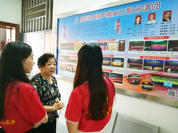 梅州客家山歌是客家文化的重要组成部分,是民间音乐、民间文学的瑰宝,是国家级非物质文化遗产。据悉,梅州市文化馆内设有客家山歌合唱团,为将客家山歌更好地传承下去,馆内还设有幼儿客家山歌教学班。7月25日,团队采访了银声客家山歌合唱团团长,团长表示,合唱团将自身多年的经验编撰成客家山歌书籍教材和唱片,成为山歌文化发扬的珍贵资料,除此之外,很多音乐教师已成为传播者和继承者,越来越多的音乐教育融入了客家山歌的元素,合唱团到各地演出比赛,吸引了越来越多的人投身到山歌传承的行列中。