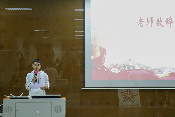 首先,马健老师上台致辞。他为同学们积极参与“光盘行动”点赞,表示勤俭节约不仅是一种生活习惯,是一种精神力量,更体现着一个人的道德修养。“米粒虽小,犹见礼仪”,他认为浪费或节约看似是个人的行为,却反映着一个社会的文明,同时对在座的同学们寄予殷切的希望,相信本次大赛的举办能更好地帮助学生养成勤俭节约、爱惜粮食的好习惯,进一步继承并弘扬优秀的中华民族传统文化,为学校和社会做出更大的贡献。