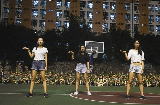 本网讯 为给新生们留下一段轻松愉悦的军训时光,9月27晚8点,管理学院文艺团在C13篮球场为军训教官及2017级新生们送上了一场简短而精彩的慰问演出。