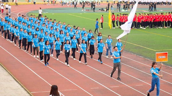 开幕式上,管院学子以一袭蓝衣向主席台走来,着装整齐,精神抖擞,朝气昂扬,每一个步伐坚定,每一次摆手有力,随着挥动,院旗在空中飘扬,副校长李华钢致开幕词表达了对本次工作人员的慰问与感谢,祝愿运动健儿们以昂扬精神,拼搏进取,赛出风格,赛出水平。