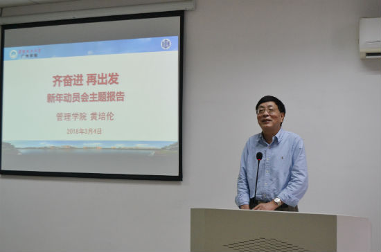 黄培伦院长强调,2018年学院要遵循学校的部署和要求,围绕“三新”(新态势、新思维、新作为)努力开创管院发展的新格局。