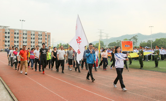 本网讯(记者 张淑敏) 为丰富我院教工业余生活,促进教职工身心健康,促进和谐校园建设,11月9号下午,我校“我锻炼 我快乐”第七届教职工趣味运动会在学校足球场举行。伴随着运动员进行曲,由五十余名教工运动员代表组成的方阵队伍迈着整齐的步伐走进运动场,以昂扬饱满的精神状态迎接运动会的举行。