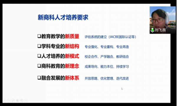会议伊始,刘飞燕对各位专家、老师的到来表示热烈欢迎,希望各位专家提供宝贵意见。然后她从学校概况、定位、学院办学使命、教学体系等几方面介绍了管理学院商科的办学理念和成效,并表示学校新增设供应链管理专业是顺应国家发展战略需求,有利于加强优势专业布局,突出优势专业特色,有利于培养当下社会何企业需要的人才。