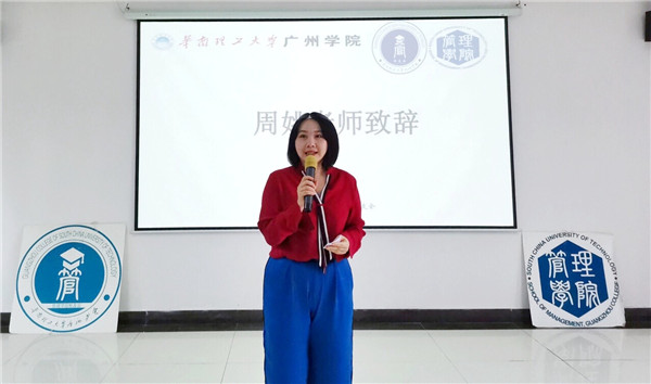 在决赛开始后,由周姚老师上台致辞:“整个活动的顺利推动和举行都离不开每一位同学大力支持和参与,俗话说,众人拾柴火焰高,办好一个活动离不开各个环节的通力合作。预祝大赛圆满成功,祝大家都能取得好成绩。”