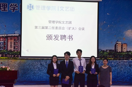 经过各个队伍慎重审核与筛选,管理学院文艺团第四届第一任最终产生4名常委,23名委员。为加强对文艺团事务的管理和对有艺术特长学生的培养,特聘欧琳露老师和张青老师为管理学院文艺团指导老师。
