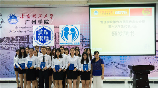 本网讯(记者 陈锐蕊) 9月28日晚,华南理工大学广州学院管理学院团委、学生会第六次团员代表大会暨第六次学生代表大会在A7-101召开。管理学院党总支书记、副院长苏来英,学生工作办公室副主任祁健,团委书记苗晓亮,团委副书记胡靖姗,团委特聘指导老师师雯俏、吕诗等嘉宾出席本次会议。团委、学生会副主席杨慧婷同学担任大会主持人。