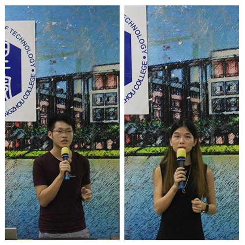 优秀学生代表曾梓兵、曾小连讲话(颜俊硕 摄)