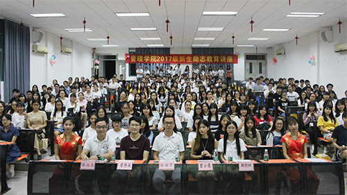本网讯(记者 王妙琪 颜俊硕)为端正新生的学习态度,营造积极向上的学习氛围,促进我院学风的良好建设,9月14日晚,由管理学院学生自律委员会举办的“2017级新生励志教育讲座”在A8-101顺利开展。参加本次活动的嘉宾有管理学院学生自律委员会指导老师张海营,管理学院就创业专员、校友工作办公室指导老师周姚,管理学院学生自律委员会主席蔡泳生、副主席黄思婷,2014级优秀学生代表曾小连、曾梓兵及2017级新生们。