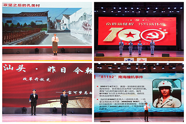 其中,“革命先锋队”为我们讲述了建党的艰辛伟大历程,着重演说了南昌起义中31位女兵的英勇事迹。他们换上整齐划一的红军装,在演说中融入军体拳,以“苟利国家生死以,岂因祸福避趋之”的豪情壮志,展示出不爱红装爱武装的巾帼豪情。“闪闪红星队”通过王伟烈士用自己宝贵的生命捍卫领土主权的感人事迹,伴之以铿锵的语气讲述了我国曾经屈辱的历史,进而强调中国一定要走强军之路——“路漫漫其修远兮,吾将上下而求索”,我们青年当需努力提升自我,强我中华!“宝可梦总动员队”则围绕“深圳”与“汕头”这两个改革开放经济特区的发展历程进行演说,展现了深圳发展成为“东方奇迹”、汕头发展成为国家高新区的沧桑巨变。在“红色青年队”三位演讲者声情并茂的演说中,观众体会到了改革开放的强大魅力与生命力,乘改革开放春风,享社会生活便利——春天的故事扣人心弦,见证着祖国的一步步强大。