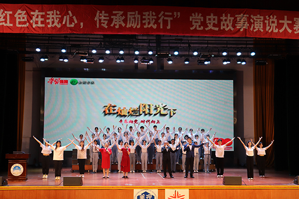 在众多杰出队伍的演说中,还穿插了学生第一、二、三党支部的红歌表演。学生第一党支部用洪亮的歌声映衬着团结的力量;在灿烂阳光下,第二党支部唱响了新希望;而第三党支部唱出了继往开来、与时俱进的大势。紧跟着由管理学院文艺团合唱队与19级市营一班带来合唱——《少年》,歌声中充满着青春与梦想的力量!