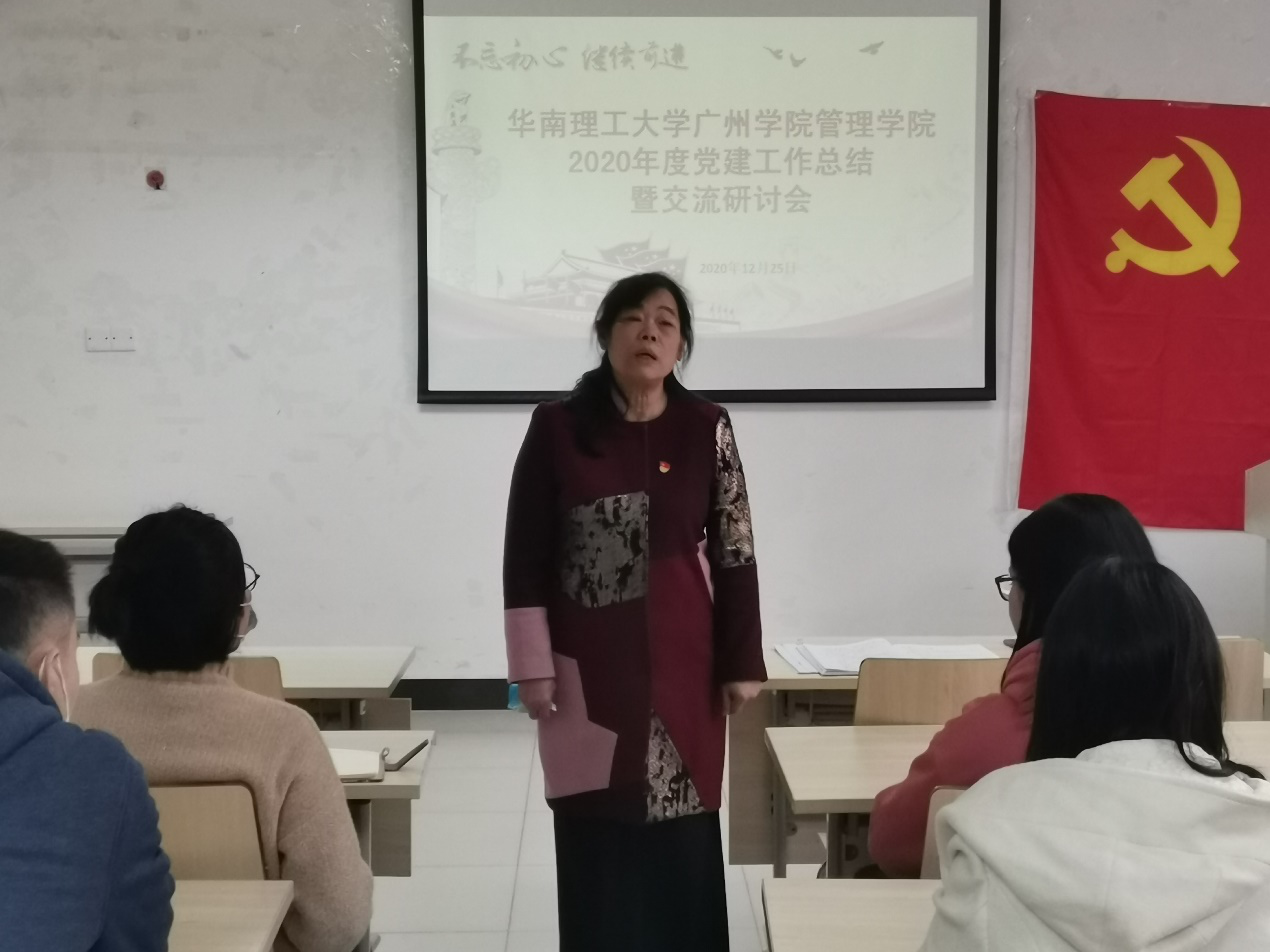 本网讯(记者 应澎)12月25日,我校管理学院党总支在A8-203召开2020年党建工作总结暨交流研讨会,交流今年各基层党支部党建工作经验,部署落实明年党建工作。管理学院党总支书记、副院长苏来英,学院党总支委员,各党支部书记参加了本次会议,会议由江洋老师主持。