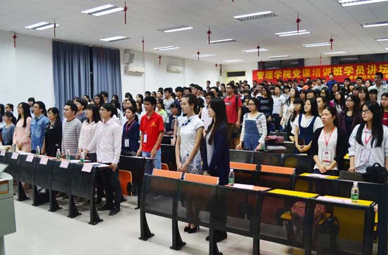 本网讯 4月15日晚,管理学院第十七期党课培训班学员讲坛在A8-101举行。经过6个党课班推选出来的12组选手围绕讲坛主题,阐述了他们对“全民阅读”的理解。管理学院党总支书记、副院长苏来英、党总支副书记徐达、年级辅导员及管理学院17期党课班全体学员参加了本次活动。