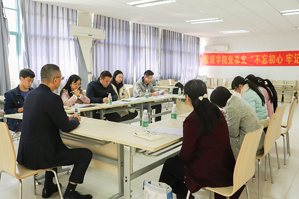本网讯(记者 陈慧婷 梁海岚 谯美仙)为了聚焦学习成果,检视自身问题,牢牢把握“守初心、担使命,找差距、抓落实”的总要求。管理学院教工第三党支部于12月2日上午在A8-203开展“不忘初心、牢记使命”的专题组织生活会暨民主评议党员大会。学校党委委员、副校长李华钢、管理学院党总支书记、副院长苏来英、管理学院教工第三党支部全体党员出席了本次会议。