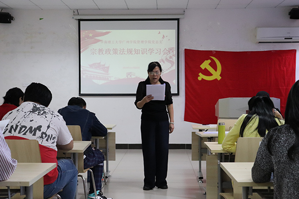 本网讯(记者 谯美仙)为加强对党和国家关于宗教工作的理论工作的理论和方针政策、法律法规的学习,进一步提高我校教师运用法治思维和法治方式做好宗教工作、处理宗教问题的能力,管理学院于11月22日下午在A8-203开展宗教政策法规知识学习活动。管理学院党总支书记、副院长苏来英、全体学生工作办公室老师出席了本次会议。