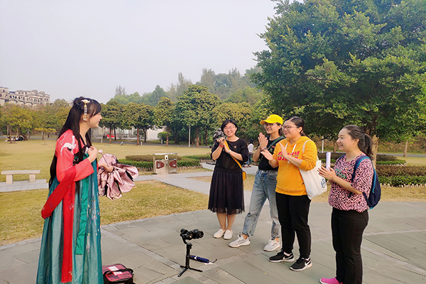 “我在花都湖整改修建前就已到这里工作,见证了它从破旧的样貌变成现在秉持着特有的建筑文化的旅游地。从这里,我感受到中国不仅在经济方面取得繁荣,还加强优秀文化的继承和弘扬。” 一位在花都湖工作多年的清洁员说道。