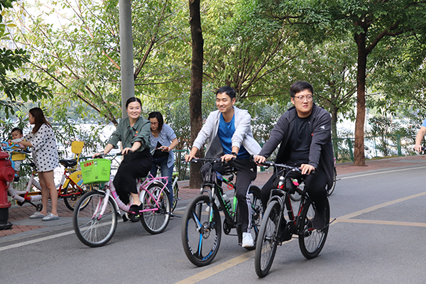 到达花都湖遥望广场后,大家便以小组团队协作的形式共同完成游戏,学习党的相关知识。第一项游戏——你画我猜,截取的词汇皆为新中国在新时代进程中的重大的、具有代表性的惠民政策和成就。第二个则为考验体力与脑力的游戏——骑自行车比赛。比赛过程中,各教职工党员都卯足劲儿,拼尽力地向终点驶去,连花都湖沿岸的美景也恍不住他们的眼,只为初心,不受惑。
