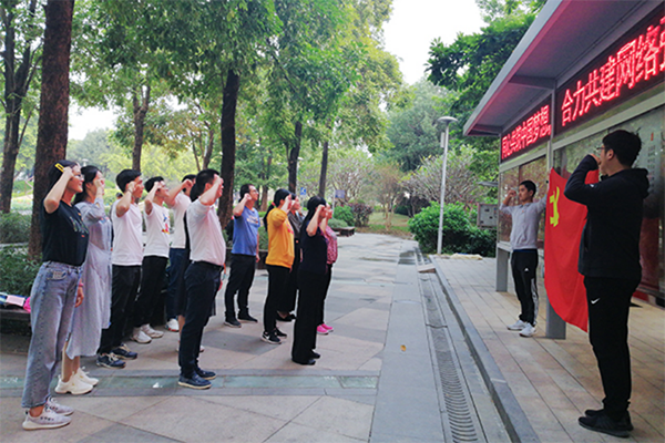 活动最后,大家合唱《我和我的祖国》并重温入党誓词。深情的赞歌,诉说赤子之心;碧浪清波的声线,逐渐渗入柔软的心窝;铿锵的誓言,振奋党员的精气神。