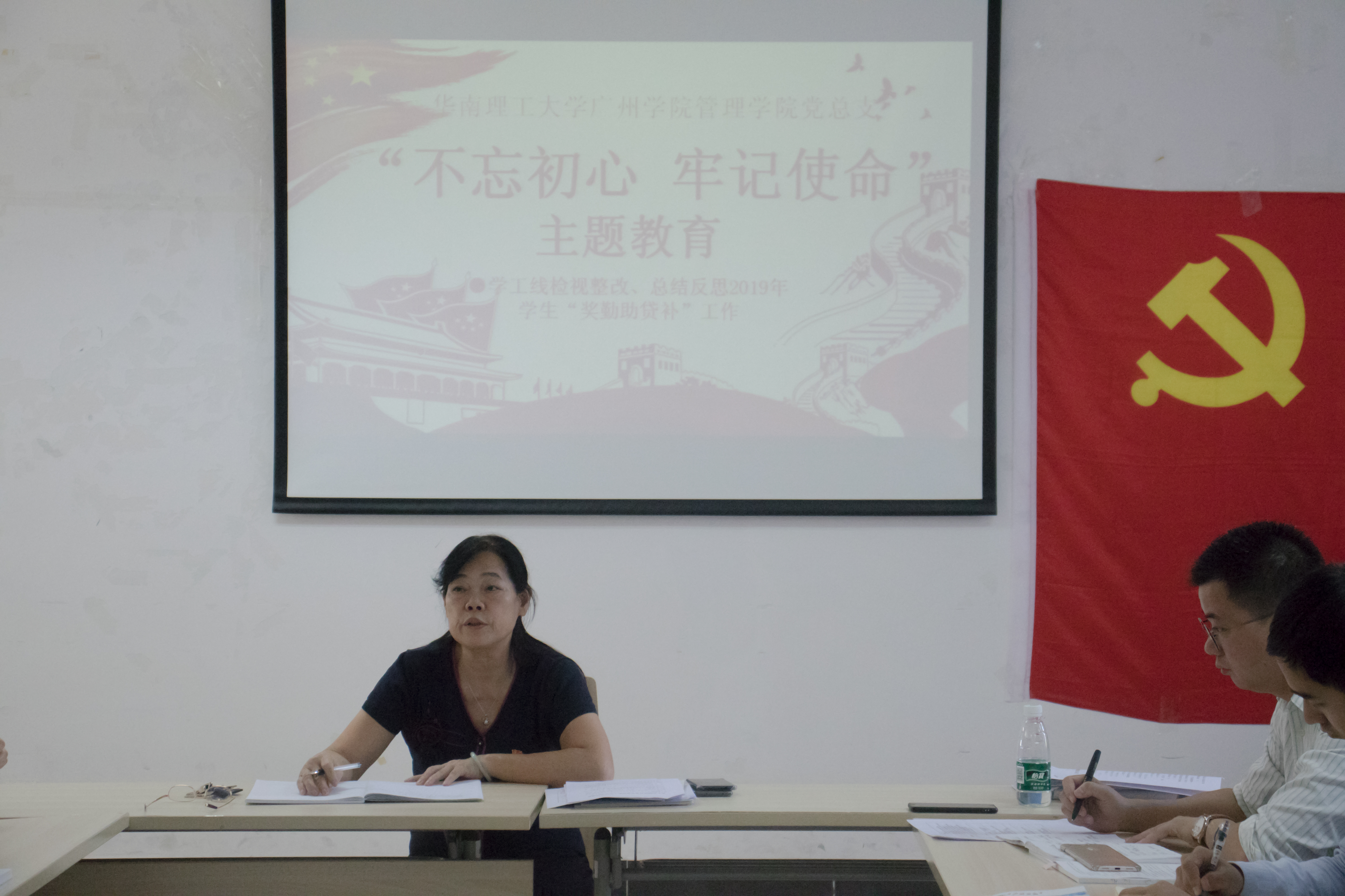 紧接着,苏来英对管理学院2018-2019学年度的“奖勤助贷补”工作表示肯定和赞扬。同时,她还指出在“奖勤助贷补”评选和审核过程中存在的问题,比如学院优秀班集体材料不充分、奖助学金发放时审核不严等等问题,这些问题本来都可以避免,希望各位老师端正态度,及时把问题上报领导,遵循规章制度,循序渐进;对于一些相关资料的审核,需要学生先核实,老师再检查,确保信息的准确性,从而保证“奖勤助贷补”工作的顺利完成。
