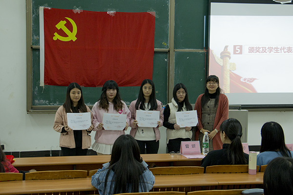 表彰大会共设有“笔酣墨饱”奖、“妙笔生花”奖、“学富五车满经纶”奖,共有来自五个学生党支部的60名学生获得。获奖代表宗颖牒同学发表感言,她认为自己因善于独立思考而获奖,修身阁活动唤起了她的自我修身意识,增强了党性修养,给她提供了沉淀自我的机会,并且产生了修身需落实到日常生活中的感想;陈艳霞同学则提出要以更高标准要求自己,不断变好的感言;叶淑林同学表示从观看《榜样3》的电影中认识到榜样的力量是无穷的,充满无限的正能量。