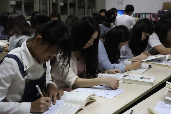 阅读活动中,学生第二、第四党支部的同学们正在阅读书籍并专心致志地记录着他们的读书笔记。