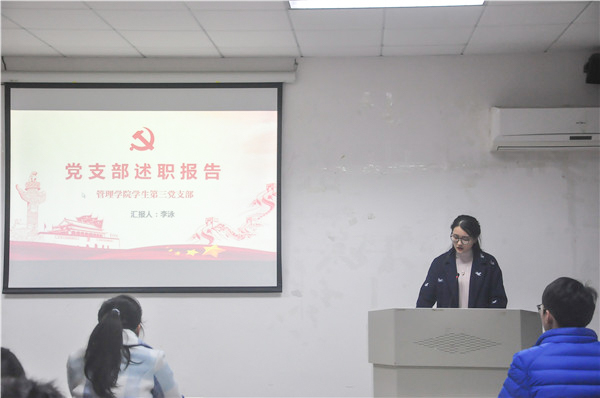 李泳同志讲述了学生第三党支部在过去一年里,不仅做到了积极开展加强班风、学风建设,不断加强党性和组织性建设等活动,还不断努力地做好基层党组织的工作,发展好党员,完成好校党委下达的工作。学生第五党支部书记江洋表示,该支部不断加强学生建设,让同学们练就过硬的学习技能和过强的党性,下一步将以提高学生理论水平与实践水平为目的,让学生党员更深入地了解党、接近党,为学校和社会贡献出自己的一份力。