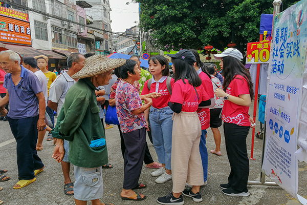 炎炎夏日,团队成员顶着似火的骄阳,耐心地向当地居民讲解活动内容。一位成员深有感触地说道:“部分当地居民无法听懂普通话和粤语。但为了加大活动的宣传力度,我们采用肢体语言、当地学生翻译等多种宣传方式,深入推进‘互联网+农业’,让农业抓住潮流,融入新时代。”