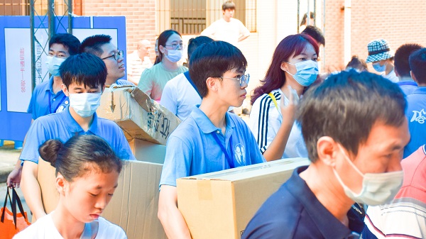 助班发放钥匙与一卡通(黄俊龙 摄)