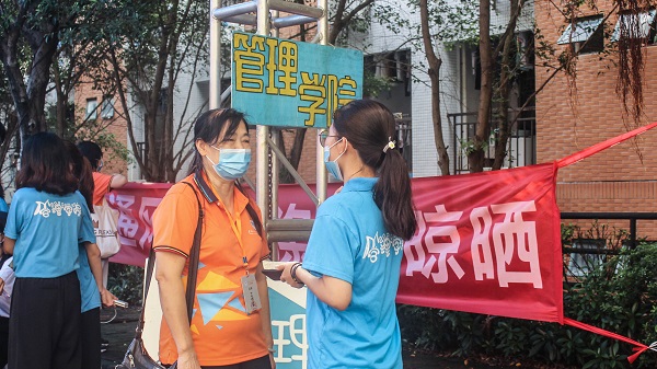 管理学院团委、学生会的志愿者们认真积极地解决新生、家长遇到的问题,他们戴着迎新工作牌,穿着工作服在人群中接待新生、引导家长、解答问题等。一切工作都在温馨的服务氛围中有条不紊地进行着。