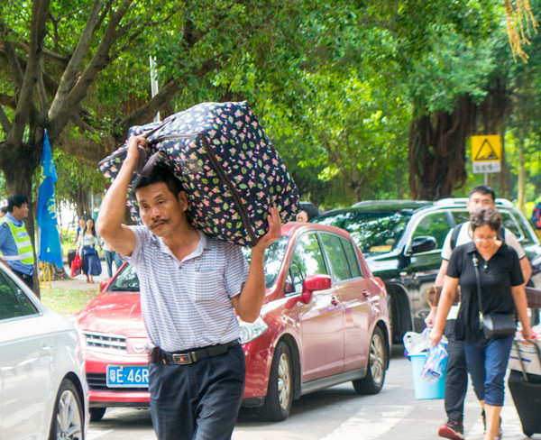 志愿者帮助新生拿行李(邱晓冰 摄)