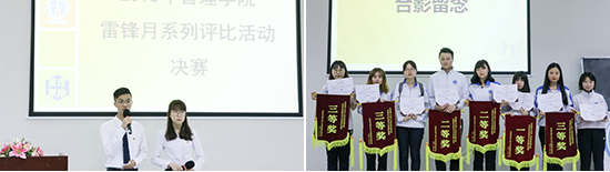 3月29号下午2点半,持续了大半个月的管理学院学雷锋志愿服务月系列评比活动于A8-108迎来最终决赛。决赛过程中,各团支部通过情景再现、志愿微电影放送、朗诵和歌唱等形式的答辩展示,多层次、多角度地深刻诠释了雷锋精神的核心内涵,生动地展示了在举办雷锋月活动过程中各团支部发动汇聚基层的强大力量,获得现场嘉宾和老师的一致好评。决赛最终评选出8支优秀团支部队伍进行颁奖表彰,由此2018年学雷锋志愿服务月系列评比活动圆满结束。