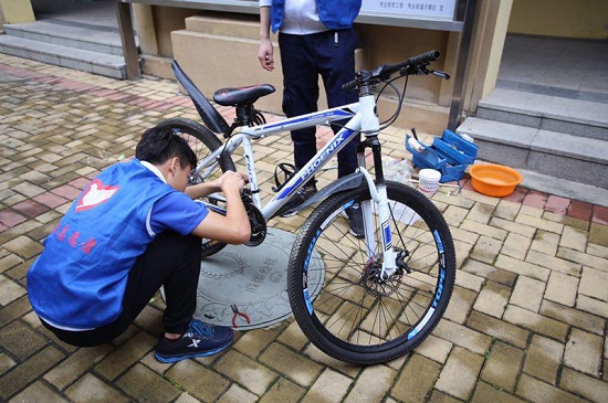 早上7点45分,我校志愿者们从学校出发至活动地点——红棉社区进行活动现场布置工作。本次的便民服务活动围绕手机贴膜、毛衣去球、免费理发、修理自行车、清洗饮水机及维修电脑六个服务项目展开。