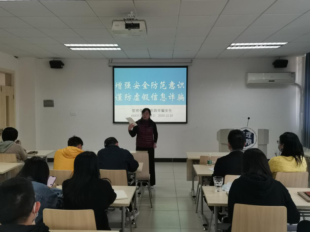 本网讯(记者 应澎)为提高学院师生安全防骗意识,我校管理学院于12月7号召开了学工线防诈骗专项安全工作部署会议,对学院的防诈骗工作进行动员部署。管理学院党总支书记、副院长苏来英以及全体辅导员参加了本次会议。