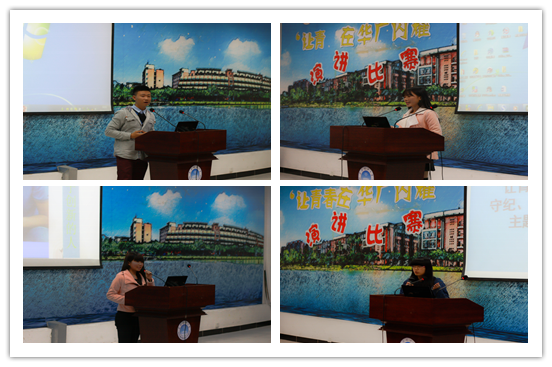 经过前期的班级初赛、复赛等一系列选拔过程,14位选手脱颖而出进入决赛。在决赛中,选手们分别围绕“诚信、成才、好学、守纪、务实、创新、追求” 七个主题展开,根据自己的经历,畅谈学习、生活与理想。讲到“诚信”, 2014级财管4班李坤锜谈到诚信与友谊之间的关系。他说,“诚信是友谊的根,有诚信作支撑的友谊才不会随时间流逝而褪色,在人生遇到坎坷时,在人生失意时,朋友随时会回头扶你一把,也正是因为朋友才使自己的青春闪耀光芒。”提及“成才”,2013级人力3班的张文兰围绕“怎样才算成才”和“怎样做才能成才”两个问题展开阐述。来自2012级市营2班的选手谢焕敏则以“守纪”为主题,以自己的真实故事为例讲述了他由“反感守纪”转变为“坚持守纪”的过程,颇具感染力,赢得了台下的阵阵掌声。对于“务实”,2014级财管2班的黄美霞认为“务实前行,才能让自己的青春闪耀”;她改编的《陋室铭》描述了大学生浑浑噩噩的生活,告诫大家应该脚踏实地、务实前行。