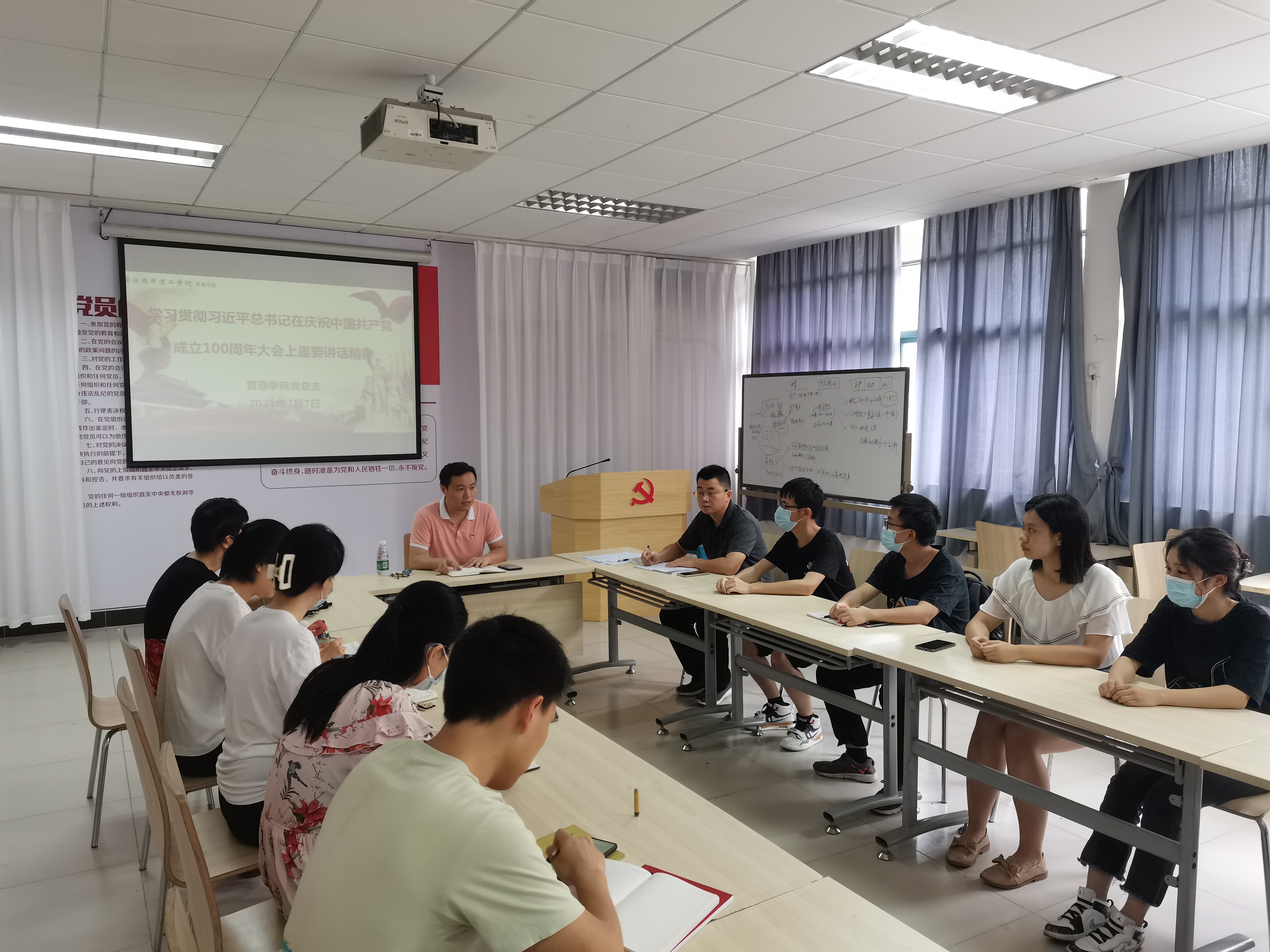 本网讯(记者 应澎)7月7日上午,管理学院党总支在A8-203组织召开学习习近平总书记在庆祝中国共产党成立100周年大会上重要讲话精神专题学习会,管理学院党总支罗自力书记主持学习会,学院党员教师和暑假留校学生代表参加了学习会。