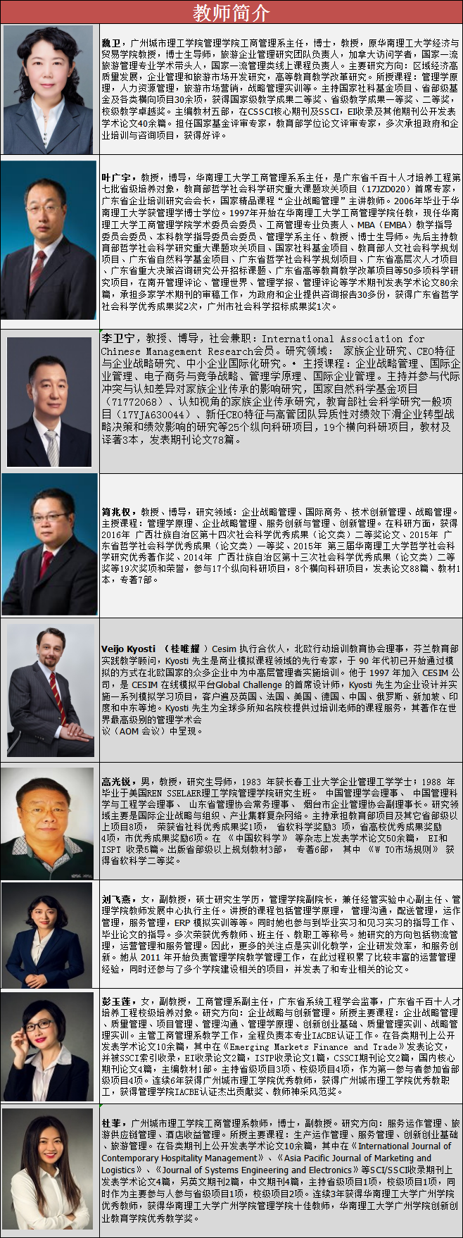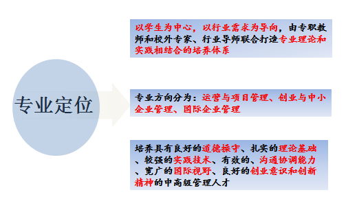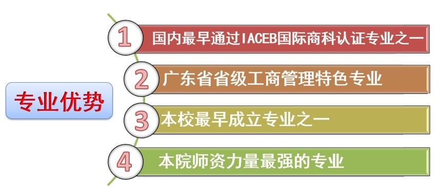 工商管理专业是我校首批创办的老牌专业,是广东省特色专业,也是首批获得美国IACBE国际商科认证的专业,设有运营与项目管理、创业与中小企业管理、国际企业管理三个专业方向和一个创新创业辅修实验班。