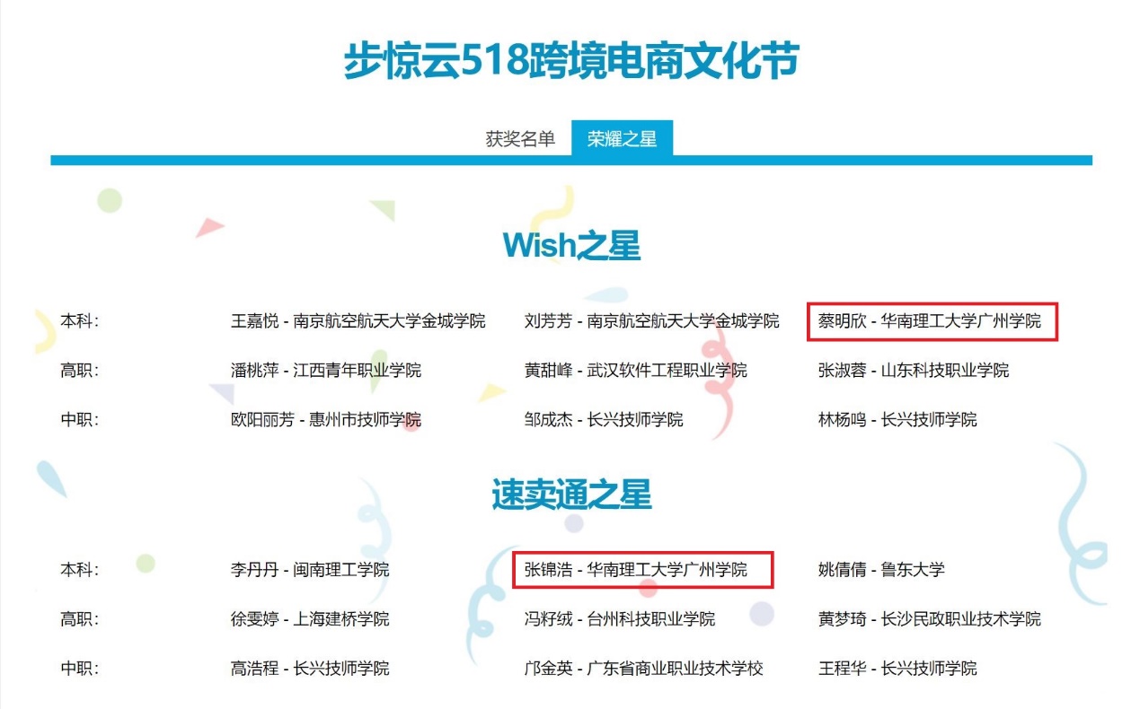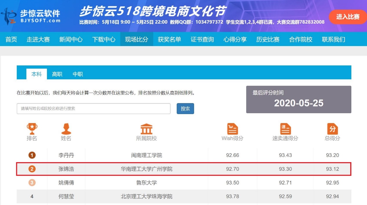 本网讯(记者侯佳均)6月2日,在刚刚结束的全国高校“步惊云518跨境电商文化节”跨境电商竞赛中获知,我院电子商务专业2017级张锦浩同学获得总分第二名并评选为速卖通之星,蔡明欣同学被评选为wish之星,张锦浩、朱巧梅、司徒钰珊等31位同学获得特等奖(TOP10%),以及41名同学获得一等奖,44名同学获得二等奖,98.7%的学生达到了竞赛评比的优秀水平的好成绩。这是我院电子商务专业开展“以赛促学,以赛促教”的教学改革探索以来参与人数最多,得奖覆盖面最广的一次,表明我院“重知识、重实践、重能力“的教学改革取得初步成果。