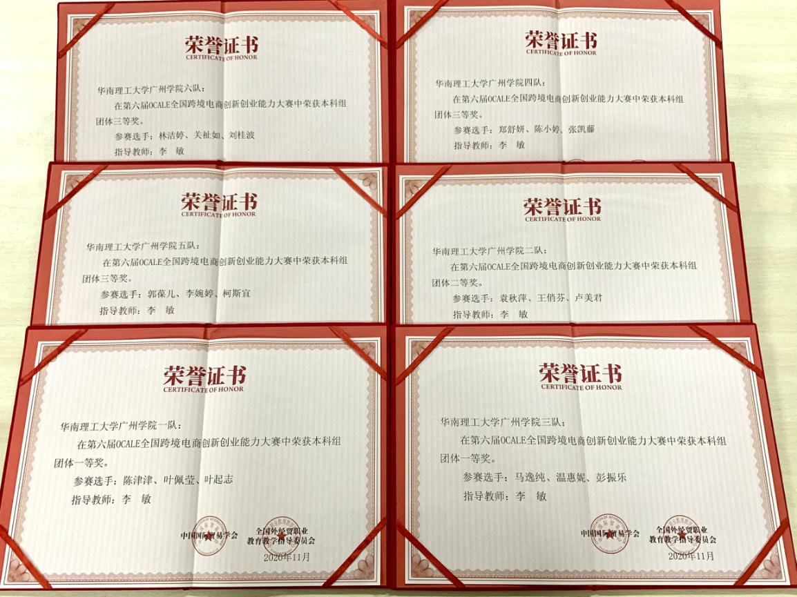 本网讯(记者李敏)11月30号,我校管理学院获悉全部六组参赛队伍在第六届OCALE全国跨境电商创新创业能力大赛暨第三届“一带一路”国家留学生跨境电商创新创业技能竞赛中全部获奖,其中,团队一等奖2组、团队二等奖1组、团队三等奖3组。六组参赛队伍的指导老师均为我校电子商务系李敏老师。