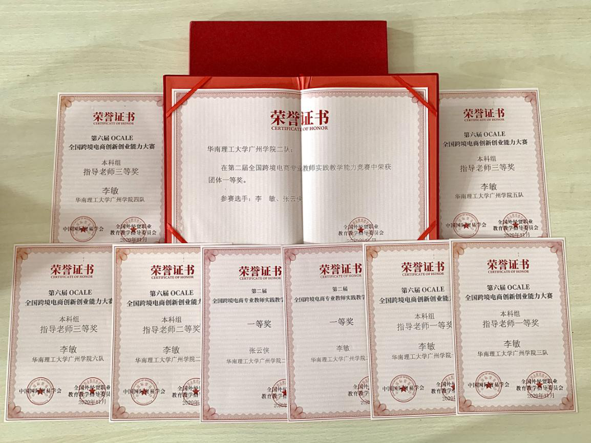 据了解,第六届OCALE全国跨境电商创新创业能力大赛暨第三届“一带一路”国家留学生跨境电商创新创业技能竞赛是由中国国际贸易学会、全国外经贸职业教育教学指导委员会主办的,本次大赛共设有本科组、高职组、中职组和留学生组四个组别,共有708支参赛队(其中本科组342支队)。并且在教师实践教学能力竞赛中,李敏老师与张云侠老师组成的教师组获得了团体一等奖。