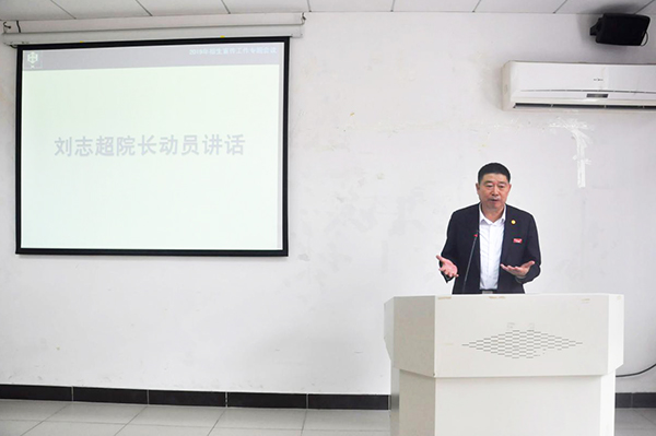 会上,刘志超院长指出招生工作是学院重要任务,是学院发展的基础工作,他讲到:“我们可以把学生比作产品,那招生宣传就是广告,在招生宣传中要展现生产过程,同时要给出用户体验说明。一是要快,各部门要充分认识到招生宣传工作的重要性和紧迫性;二是要精,充分挖掘和凝练各系教学理念、方法、内容,展现学科特色,提升招生宣传的内涵意识,以面对新时代下的新商科;三是要加强沟通,求真务实,推动我院招生工作顺利开展。”