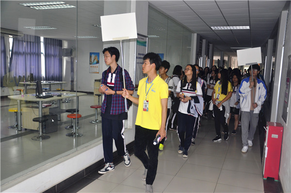 本网讯(记者王师权廖泉)11月10日下午,广州市禺山高级中学近一百五十名师生在我校招生办工作人员和我院接待人员的带领下,前往我院参观交流。交流活动主要分为两个环节,参观我院A9经管实验中心和参加“大数据、大机遇、大未来”为主题的教育讲座。