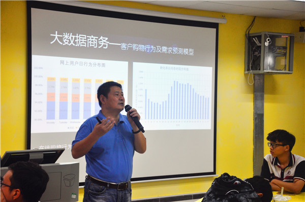 随后,学生们来到A9-201参加由我院电子商务系主任陈志轩开展的以“大数据、大机遇、大未来”为主题的教育讲座。陈主任在讲座中谈到:“这个时代是一个数据导向的时代,同时又是一个瞬息万变的时代。”现场气氛活跃,学生们认真听讲,他们也认识到:在新时代的我们,要学会提前把握机遇,把握未来,大数据时代早已来临,我们必须加强对大数据时代的认识以及从中培养自己的超前意识和创新意识,为以后的大学生活做准备。