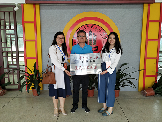 本网讯(记者周姚)5月7日开始,管理学院外出招生宣传人员兵分三组,分别前往佛山、韶关、顺德番禺等地展开招生宣传工作。佛山招生组祁健、周姚老师于7号上午从学校出发,前往佛山,至今已成功挂牌三水中学、三水实验中学为“优秀生源基地”,分别拜访两校副校长及教务主任,感谢这两所学校近年为我校输送优质生源做出的努力和贡献,与此同时,我校招生宣传工作也得到两校领导的一致好评。