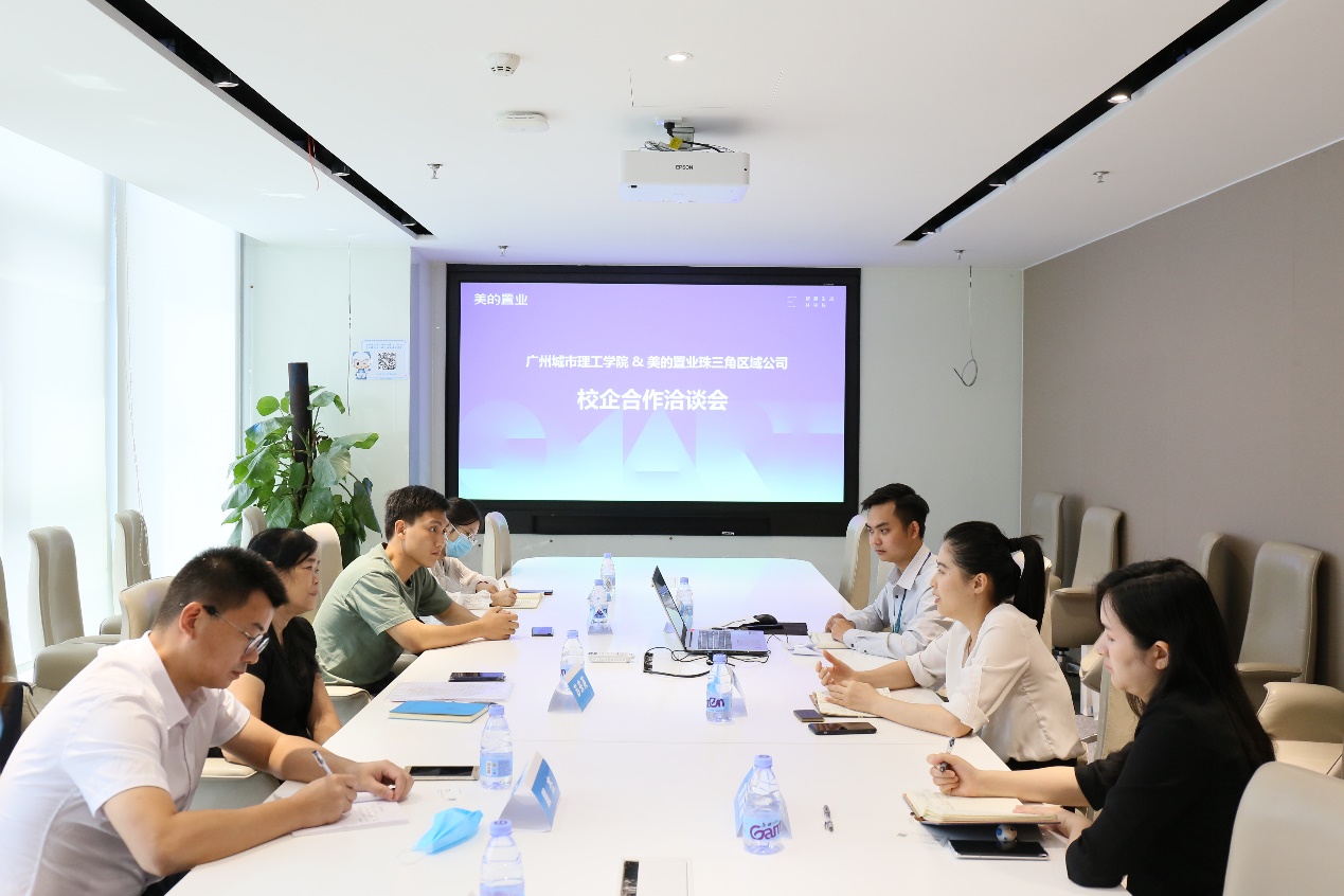 本网讯(记者 张思楚)5月25日,我校管理学院一行赴美的置业集团有限公司(下文简称“美的置业”)开展校企合作洽谈与就业实习基地签约暨挂牌仪式。美的置业集团有限公司人力资源总监陈桂婵,人力资源专业经理刘妍廷,招聘主任苏儒庆,管理学院党总支书记、副院长苏来英,学工办副主任戴杰以及相关人员参加了本次洽谈与签约挂牌仪式。此次议程由苏儒庆主持。